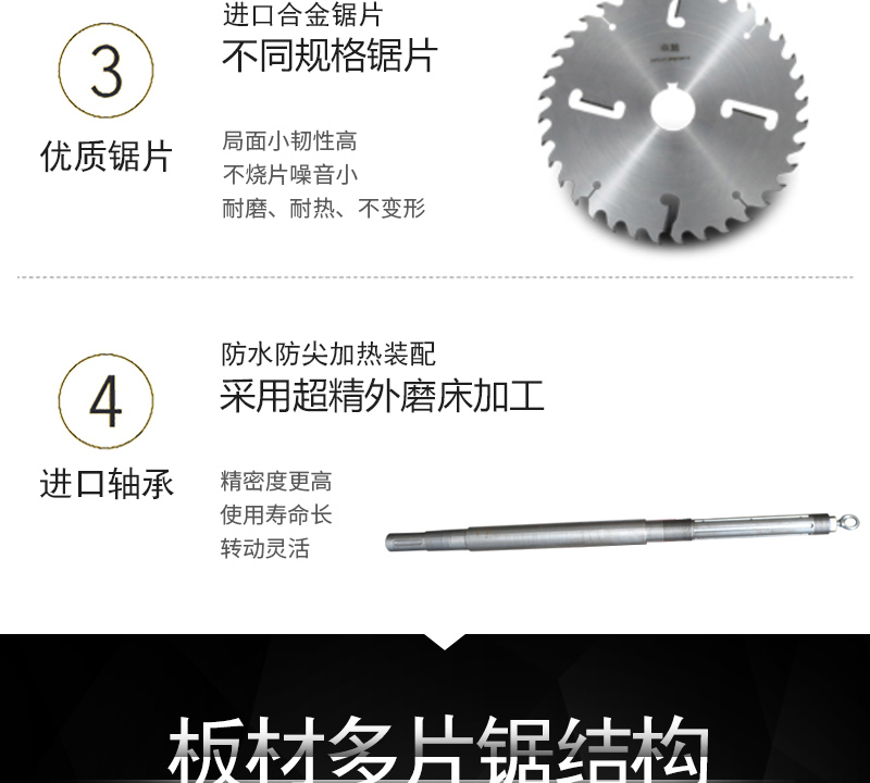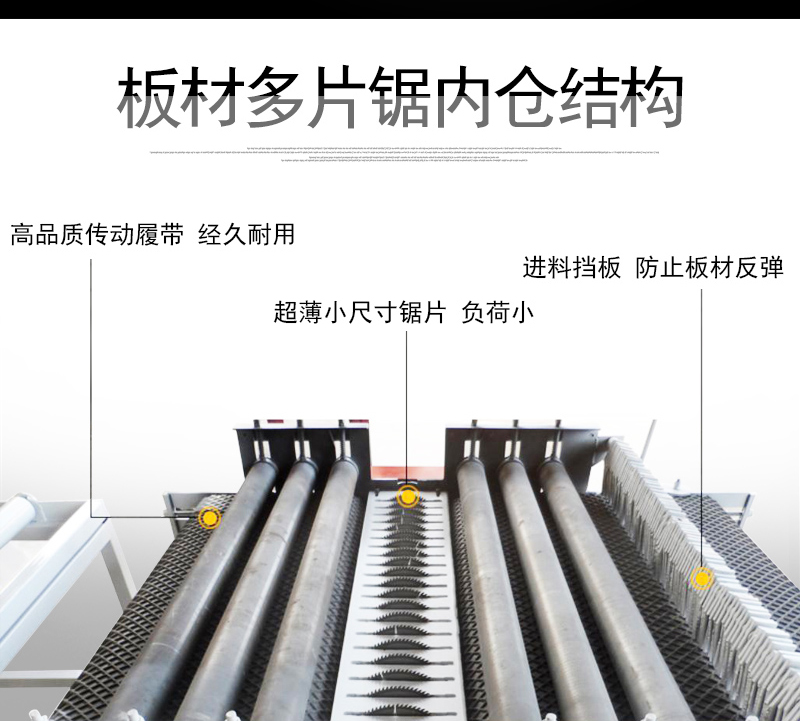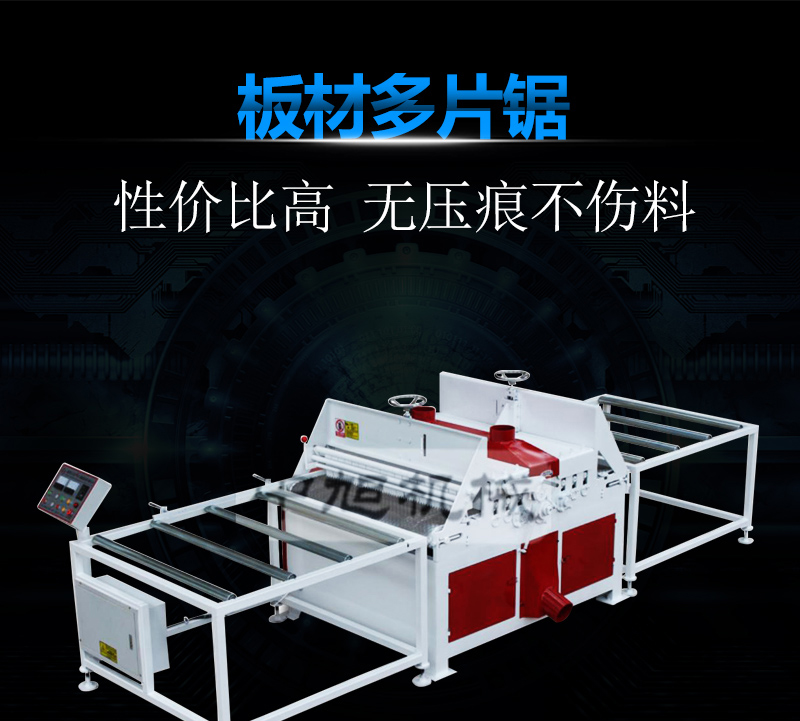 板材多片鋸適合木材加工廠,包裝廠,裝修材料廠等,主要加工整張的建筑模板、細(xì)木工板,木質(zhì)地板,石膏板,保溫板等的開條等寬.可以一次性加工多條,速度快,節(jié)電節(jié)省人工,大大提高了生產(chǎn)效率,擴(kuò)大了利潤空間,生產(chǎn)的產(chǎn)品光潔整齊、無壓痕,不傷料,提高了市場競爭力。本廠可定做各種多片鋸,可幫各單位設(shè)計(jì),生產(chǎn)流水線。