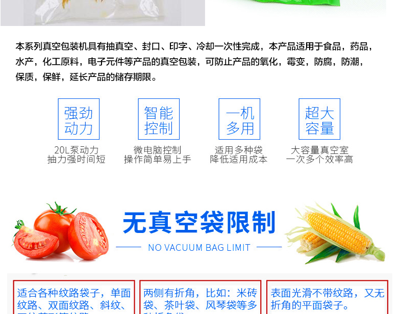 電腦版真空包裝機(jī)系列具有抽真空、封口、印字、冷卻一次性完成,本產(chǎn)品適用于食品,藥品,水產(chǎn),化工原料,電子元件等產(chǎn)品的真空包裝,可防止產(chǎn)品的氧化,霉變,防腐,防潮,保質(zhì),保鮮,延長產(chǎn)品的儲(chǔ)存期限。