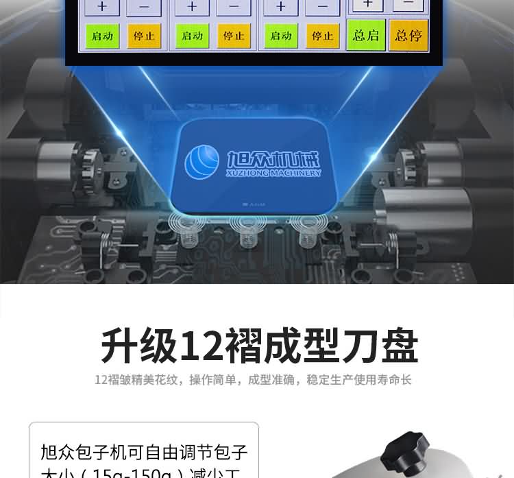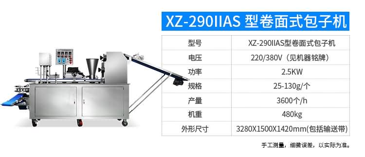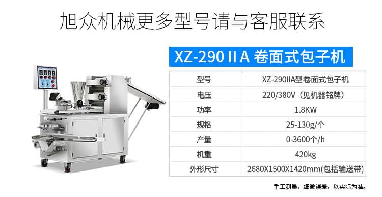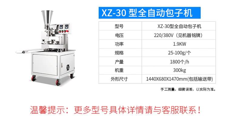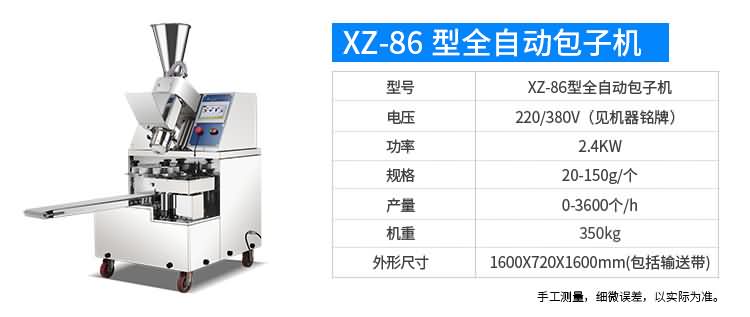XZ-87型全自動包子機體積小重量輕,不銹鋼的外殼及食品接觸面,外觀精美,花紋更多,設計先進,生產性能穩定精準,結構簡單,操作方便。可生產各種肉包、肉菜包、菜包、小籠包、湯包、水晶包、圓饅頭、奶黃包、豆沙包、叉燒包、南瓜餅等幾十種包餡制品。