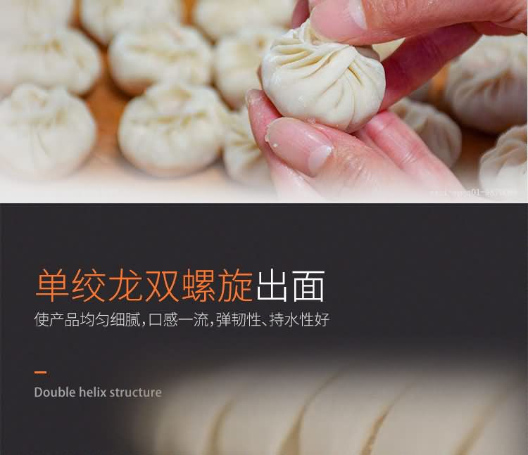 ?采用單絞龍、雙螺旋結構,充分保護面筋,使產(chǎn)品均勻細膩,口感佳,彈性好、持水性好,遠超手工制品;