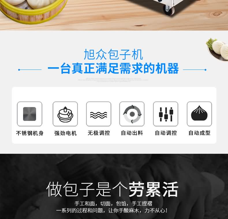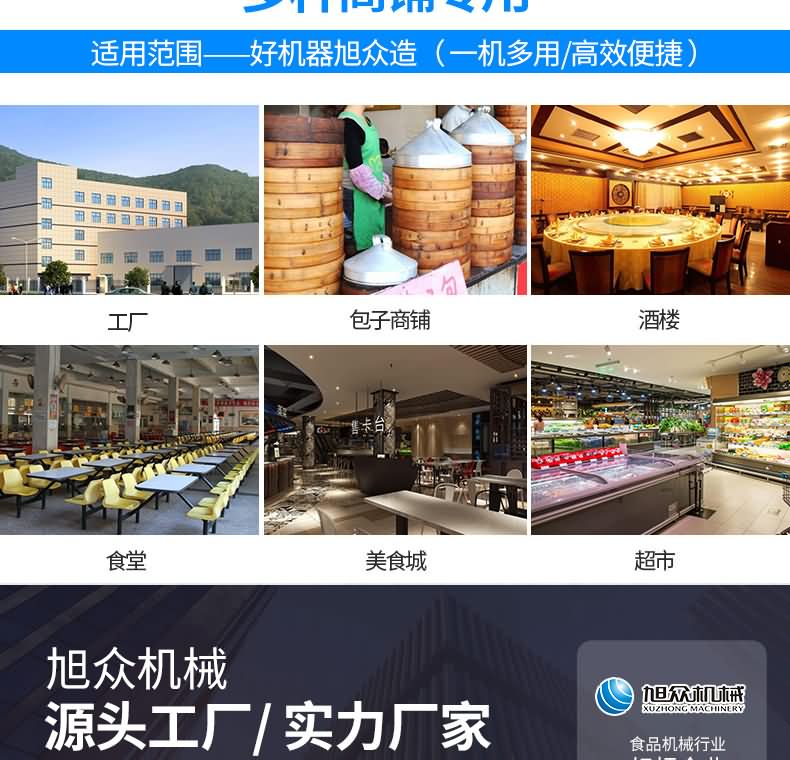 設備工作效率相當于8-12人工人同時手工制作,是現在招工難,高薪水,人員不穩定的時期的理想、高效的設備,適用于賓館、飯店、學校、機關、食堂、饅頭或包子加工廠、早餐工程店及速凍食品廠。