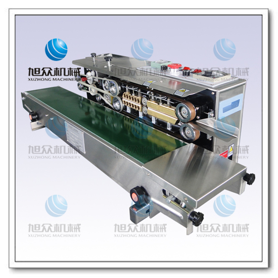 墨輪印字封口機是新一代集印碼、封口、連續輸送為一體的自動薄膜封口機,具有印字清晰、顔色可選、即印即干、換字方便等特點。