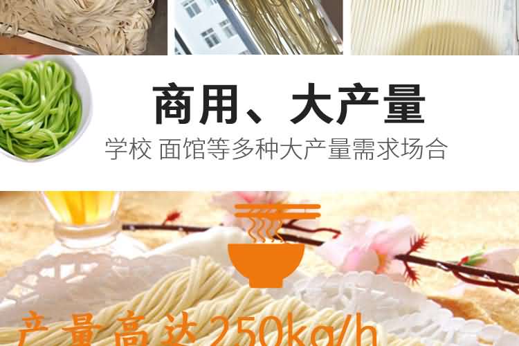 MT6-250面條機 (掛面機或濕面機) | 外形尺寸:2800×600×1400mm 產(chǎn)量:200kg/h 軋輥:98×260mm 功率:3kw 軋輥組數(shù):6組 機重:550kg | 鐵外殼 |