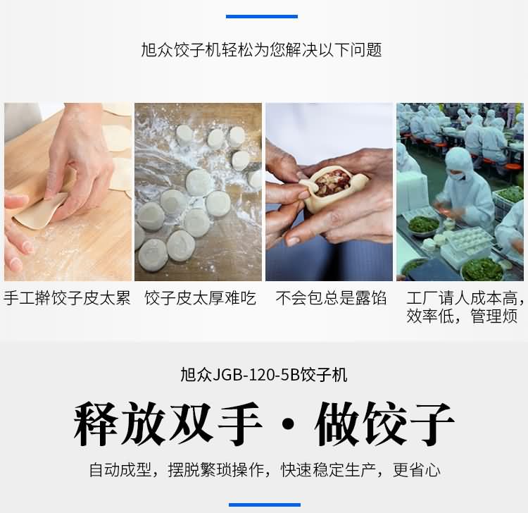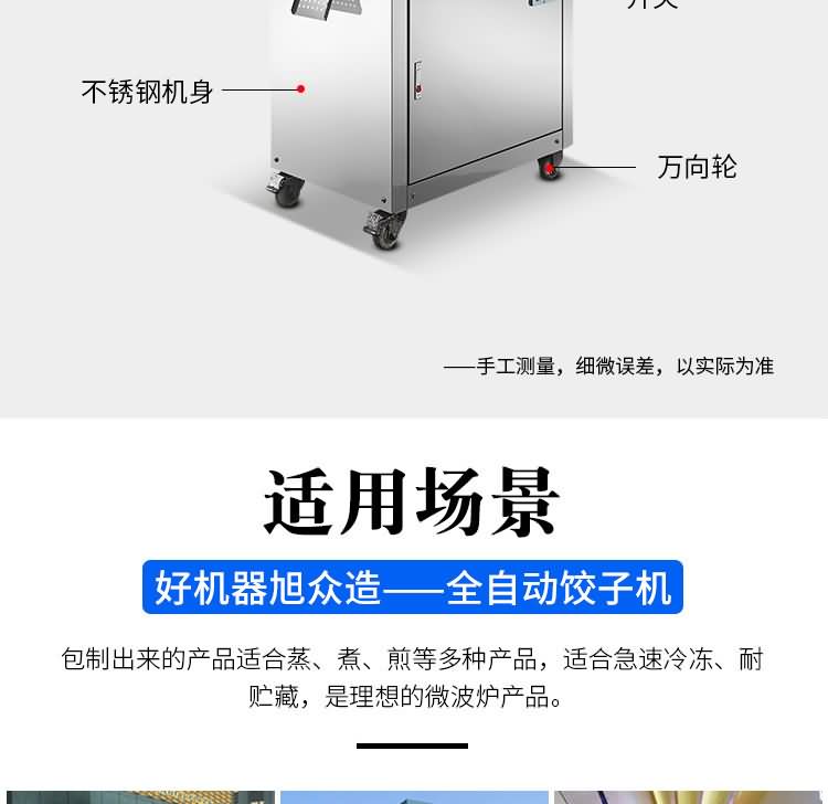 更換機(jī)頭可做春卷、餛飩、火鍋水餃、珍珠水餃、咖喱餃子、花邊餃子、鍋貼餃子