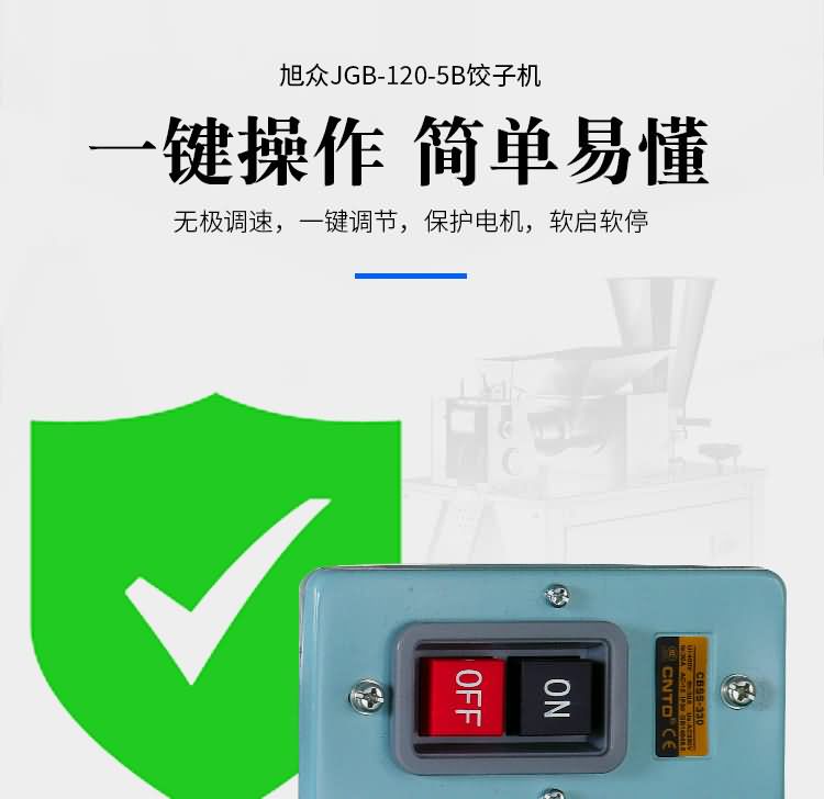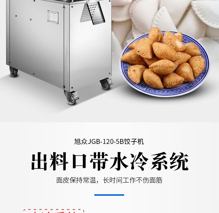 JGB-120-5B型餃子機(jī),本機(jī)是一款可生產(chǎn)各種肉餡、肉菜混合餡、全菜餡及其他種餡餃子的設(shè)備。一機(jī)多用途,只要更換模具,就可制作不同的食品,如春卷、餛飩、咖喱角、鍋貼等。適用于賓館、飯店、餐廳、團(tuán)體食堂加工,幼兒園、速凍餃子生產(chǎn)。