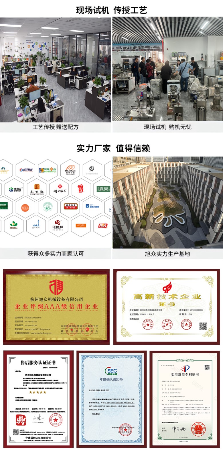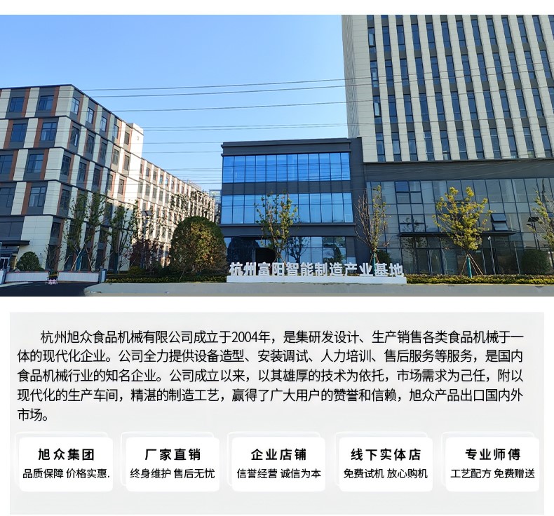 杭州旭眾機械設備有限公司是一家集科研開發,生產設計,營銷服務為一體的現代化生產企業?,F代化生產車間,精湛制造技術,所產機械歷經市場重重考驗,不斷贏得海內外客戶的贊譽。