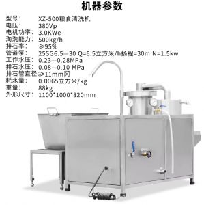 名稱XZ-500糧食清洗機 電源380V 功率1.5KW 產量500-800kg/h 尺寸1100*1000*820mm 重量88kg 規格 其他