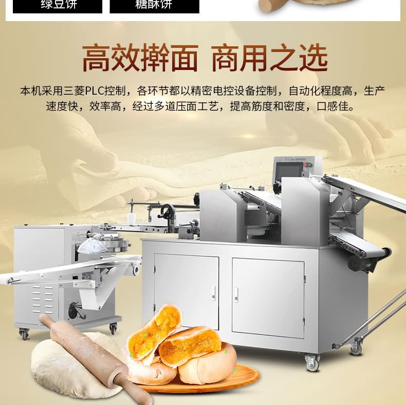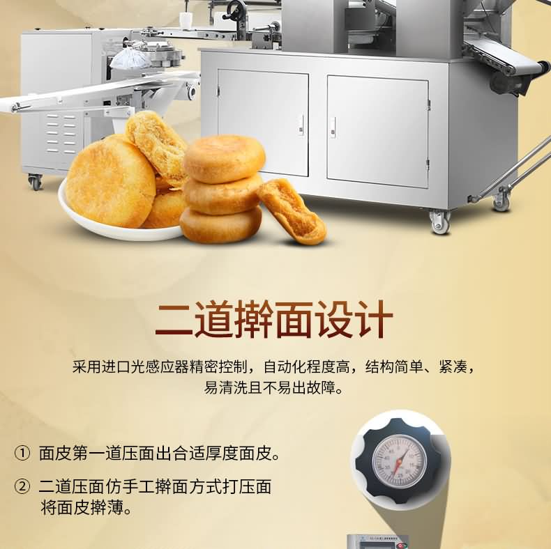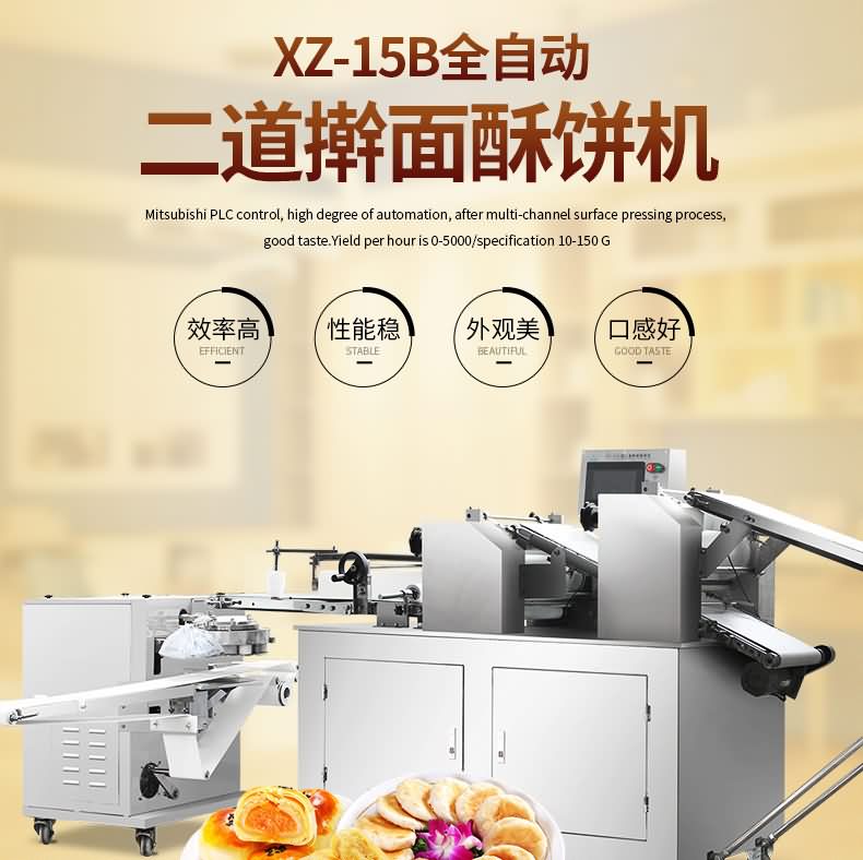 XZ-15B二道搟面酥餅機(jī),生產(chǎn)速度快、效率高、生產(chǎn)流程流暢,各環(huán)節(jié)都輔以電控設(shè)備控制,不會(huì)出現(xiàn)堵面、破酥等現(xiàn)象??缮a(chǎn)蘇式月餅、肉松餅、老婆餅、廈門餡餅、金華酥餅、拉絲面包等等特色酥餅,適用于大、中型糕餅生產(chǎn)廠家,免費(fèi)提供工藝技術(shù)。