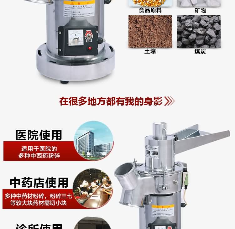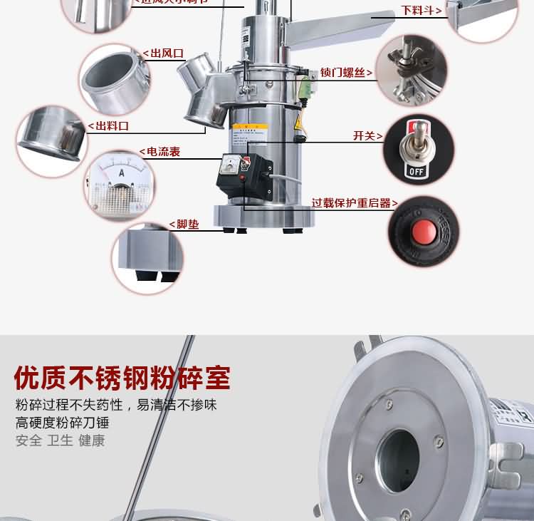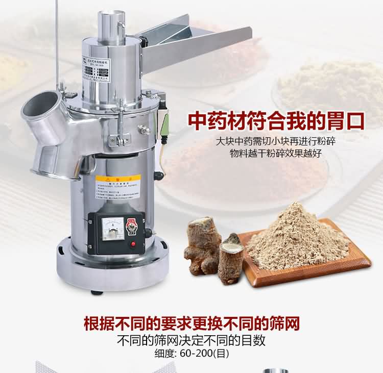 HK-08B落地流水式粉碎機又名高性能粉碎機、體積小、造型美觀、移動方便、操作簡單,特殊構架運轉絕無振動、噪音最低、安全性高、性能穩(wěn)定、衛(wèi)生潔凈、損耗極低、效率高、細度準確可調;與藥物接觸部分用不銹鋼制作,符合衛(wèi)生標準,除制細粉外,還可制煎湯劑用的粗顆粒飲片(用粗顆粒飲片煎煮湯藥,可提高飲片有效成分的溶出率,節(jié)省大量藥材),對中西藥物、化工原料、食品原料、礦物、土壤、糧食、煤炭、實驗原料有極理想的粉碎效果,是粉碎脆性物料的首先機型。是目前診所、藥店、醫(yī)院藥房、研究所、實驗室、試制室、大中專院校、科研單位、商場、家庭粉碎的理想設備。