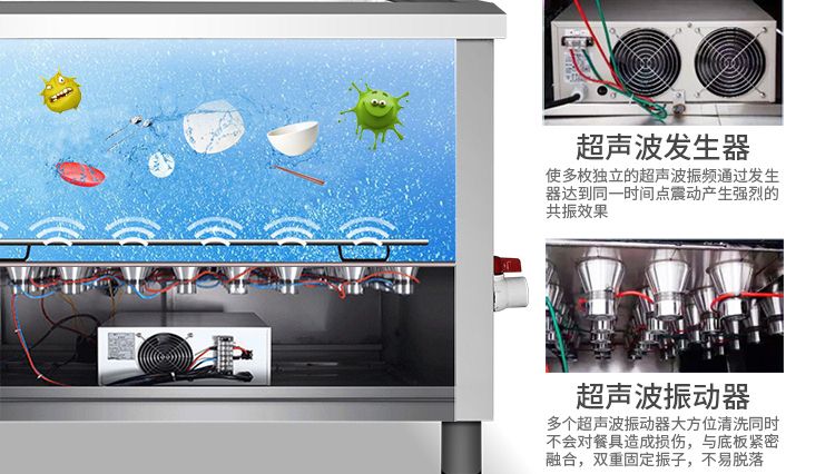 超聲波洗碗機,超聲波洗碗機適合小飯店,量不多的情況下使用。程序化控制,降低勞動強度。