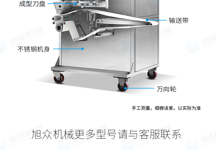 SZ-64型多功能自動包餡機采用臥式輸面輸餡系統,運行流暢,效率高。可生產豆沙、蓮蓉、五仁餡等較干餡料的包餡類產品,制出的產品餡、皮比例可任意調整,制品大小統一,外形美觀。