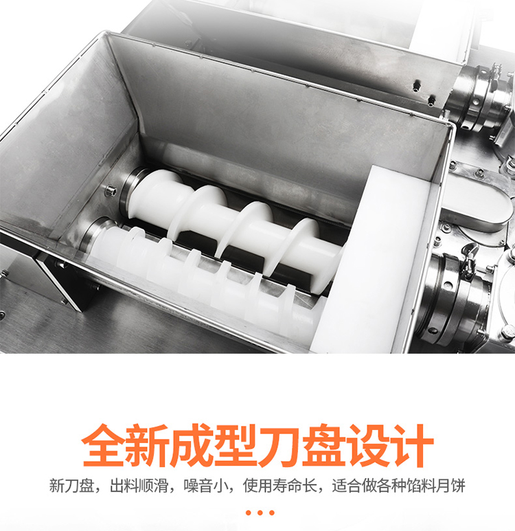 2.餡管更短,管內存料少,減小出餡壓力,有效保護餡料顆粒,使餡料更松散、產品重量、皮餡比例更加穩定,適用多種餡料;