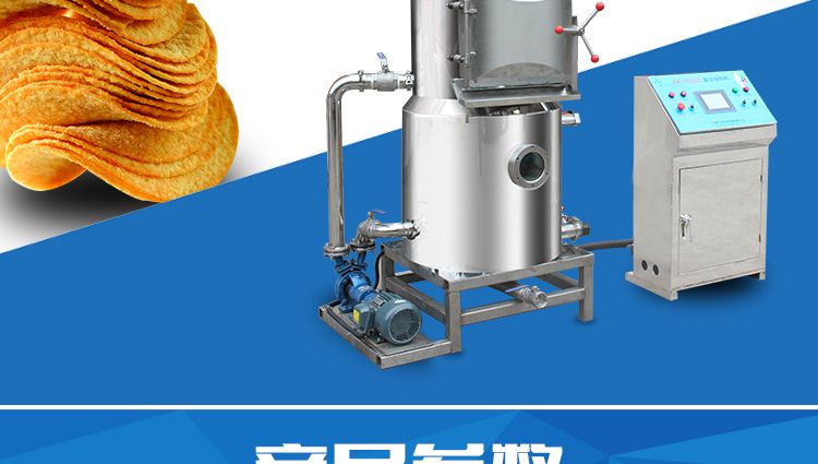 ●降低油脂劣變程度:炸用油的劣化包括氧化、聚合、熱分解,而以水或水蒸汽與油接觸產生水解為主。在真空油炸過程中,油處于負壓狀態,溶于油脂中的氣體很快大量逸出,產生的水蒸汽壓力較小,而且油炸溫度低,因此,油脂的劣化程度大大降低。