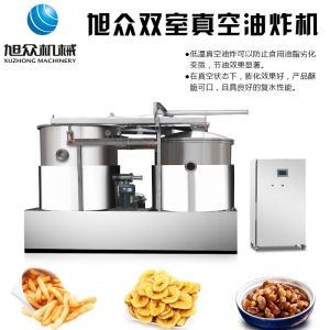 ●雙室采用上下兩個罐,脫油時確保絕對無回油,使含油、含水率低。油炸、脫油、脫水、油過濾一體化設(shè)計,在真空下連續(xù)性完成,產(chǎn)品含油量低,產(chǎn)品處于負壓狀態(tài),在這種相對缺氧的條件下進行食品加工,可以減輕甚至避免氧化作用(例如脂肪酸敗、酶促褐變和其他氧化變質(zhì)等)所帶來的危害。在負壓狀態(tài),以油作為傳熱媒介,食品內(nèi)部的水分(自由水和部分結(jié)合水)會急劇蒸發(fā)而噴出,使組織形成疏松多孔的結(jié)構(gòu)。